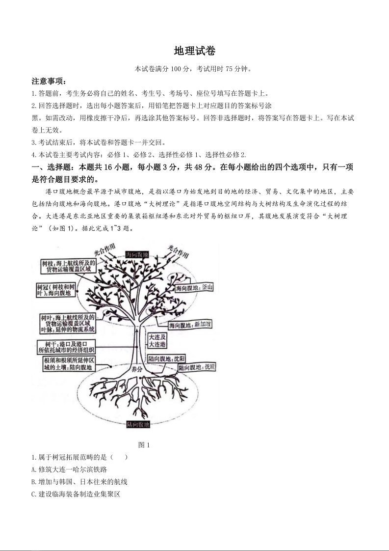 辽宁省部分学校2023-2024学年高三上学期12月考试 地理