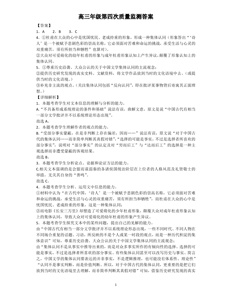辽宁省沈阳市第一二〇中学2023-2024学年高三上学期第四次质量监测 语文答案