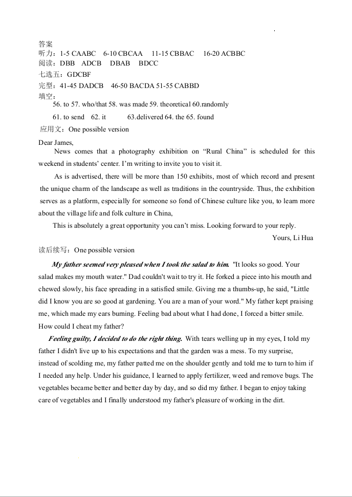 2023-2024学年度东北育才学校高中部高三第三次模拟考试 英语答案