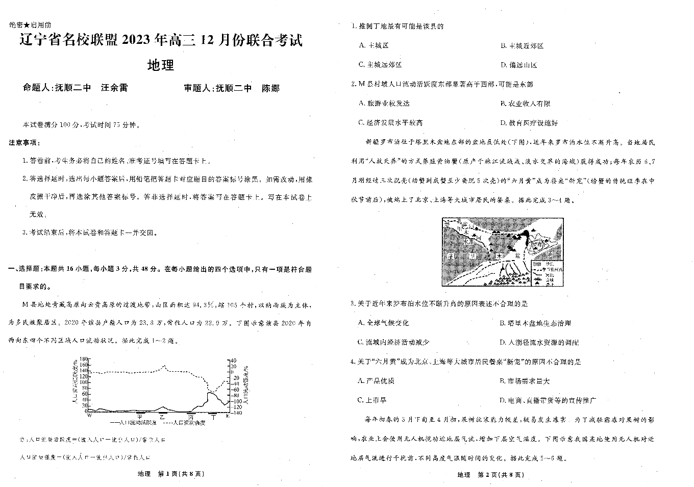 辽宁省名校联盟2023-2024学年高三上学期12月联合考试 地理