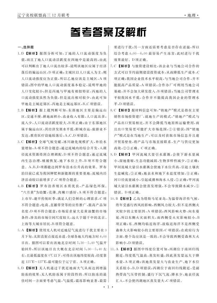 辽宁省名校联盟2023-2024学年高三上学期12月联合考试 地理答案