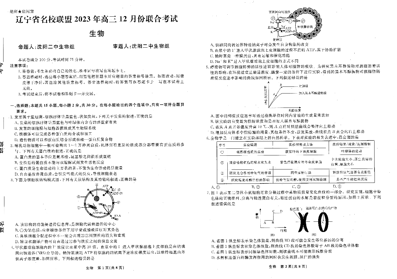 辽宁省名校联盟2023-2024学年高三上学期12月联合考试 生物