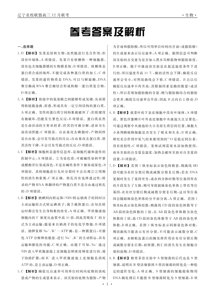 辽宁省名校联盟2023-2024学年高三上学期12月联合考试 生物答案