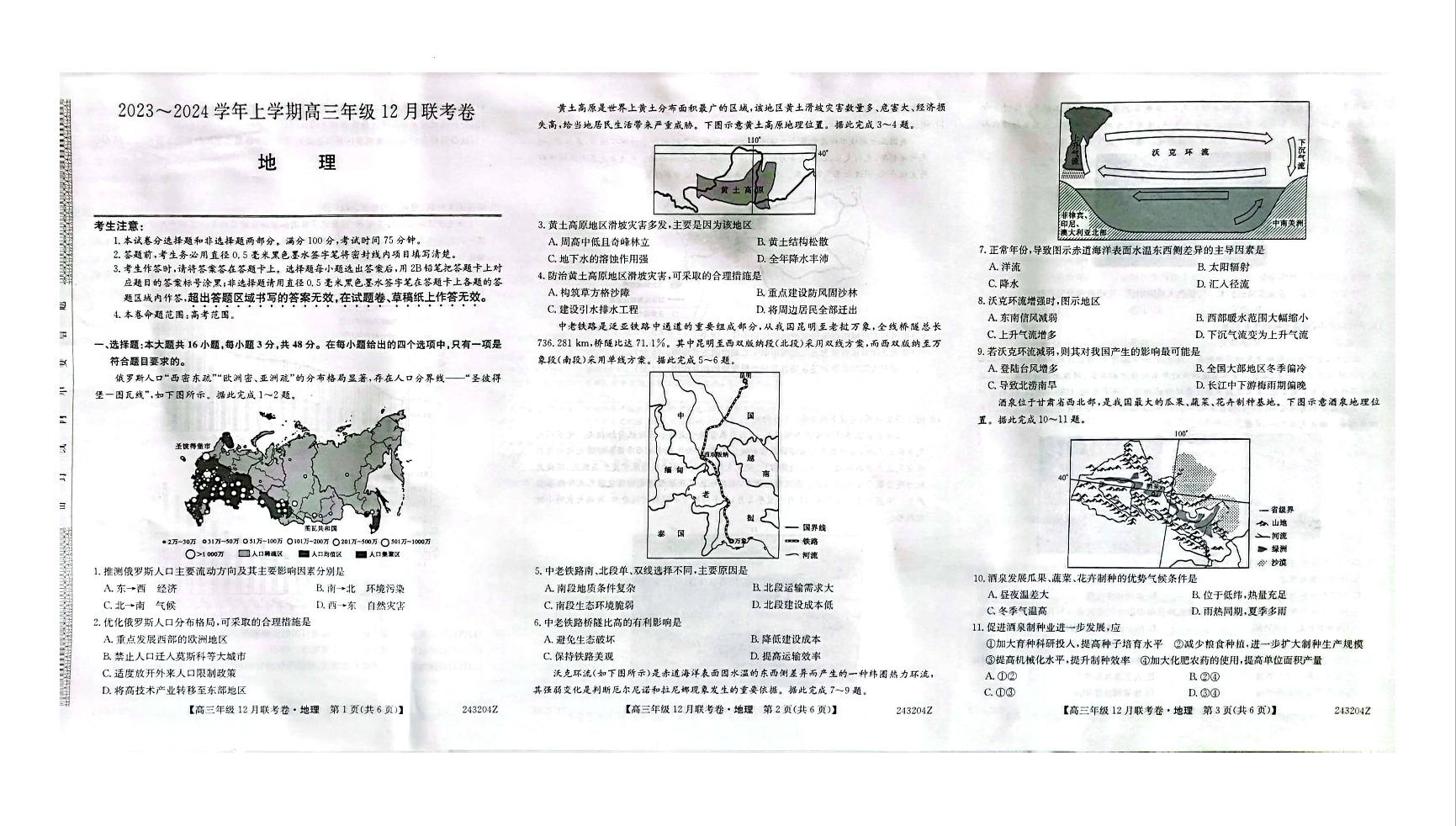 辽宁省部分学校2023-2024学年高三上学期12月联考 地理