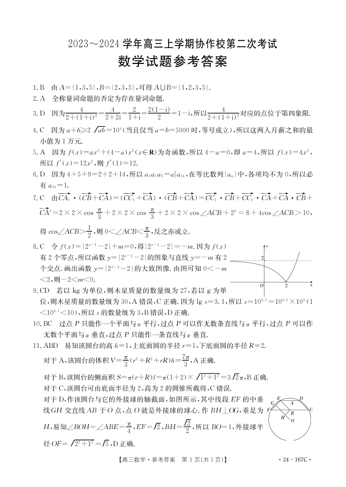 辽宁省葫芦岛市协作校2023-2024学年高三上学期第二次考试 数学答案