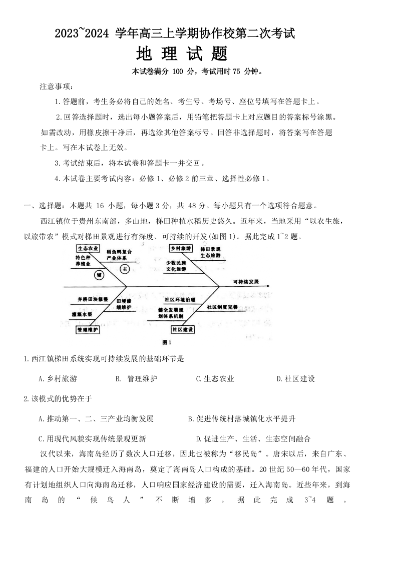 辽宁省葫芦岛市协作校2023-2024学年高三上学期第二次考试 地理