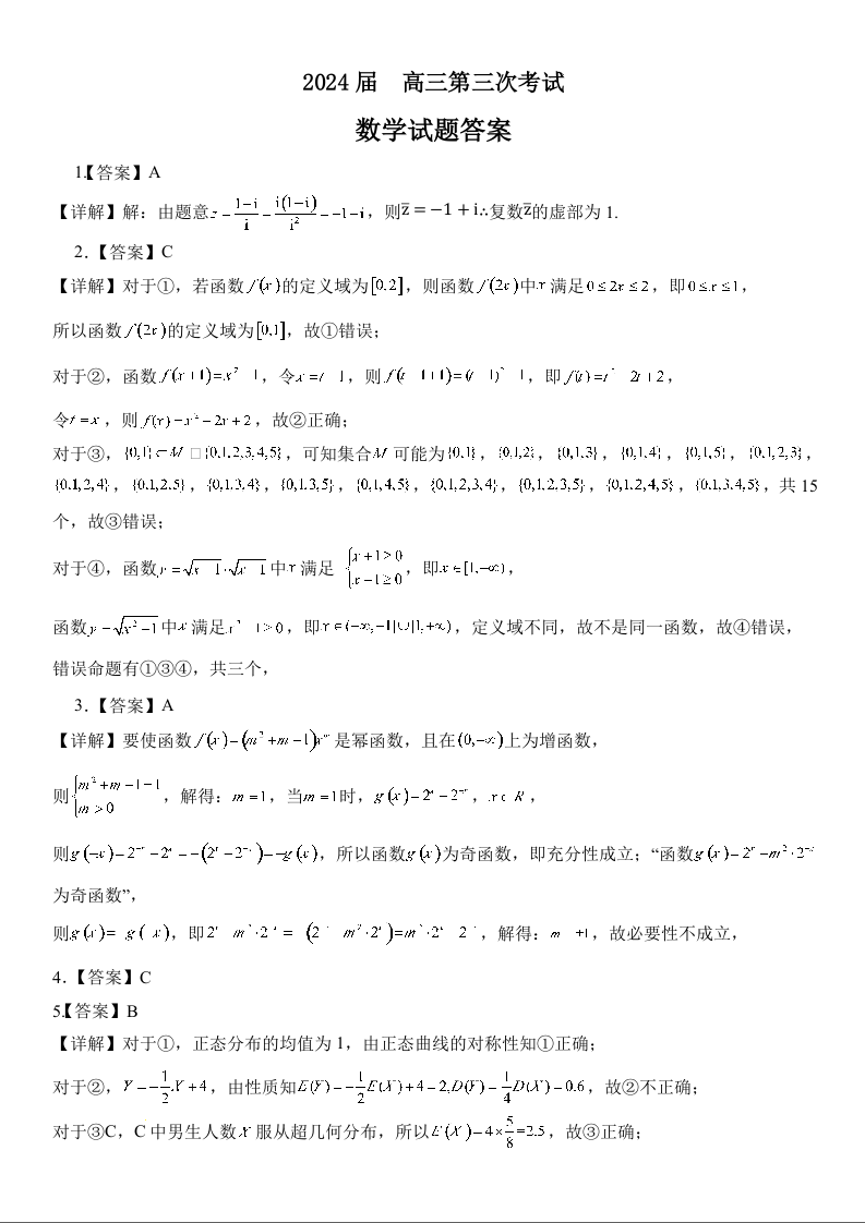 辽宁省锦州市某校2023-2024学年高三上学期第三次考试 数学答案