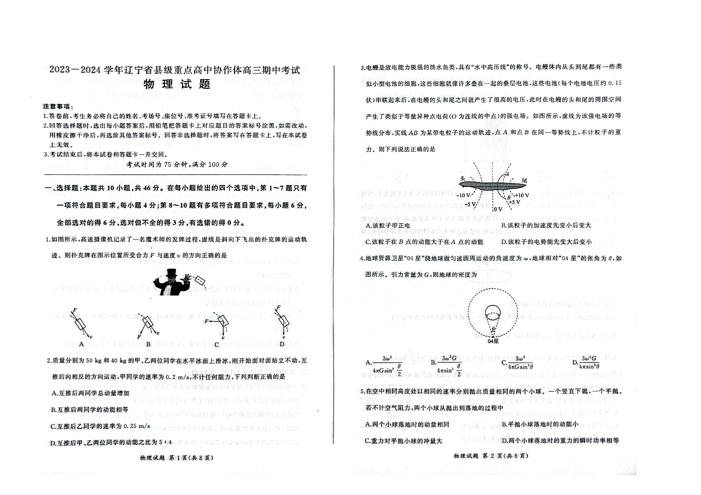 辽宁省县级重点高中协作体2023-2024学年高三上学期期中考试 物理