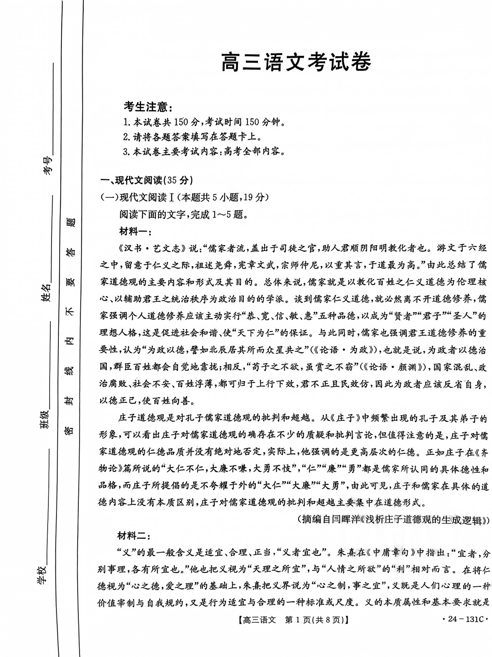 辽宁省朝阳地区2023-2024学年高三上学期期中考试 语文
