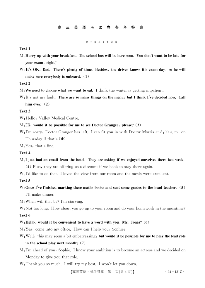 辽宁省朝阳地区2023-2024学年高三上学期期中考试 英语答案
