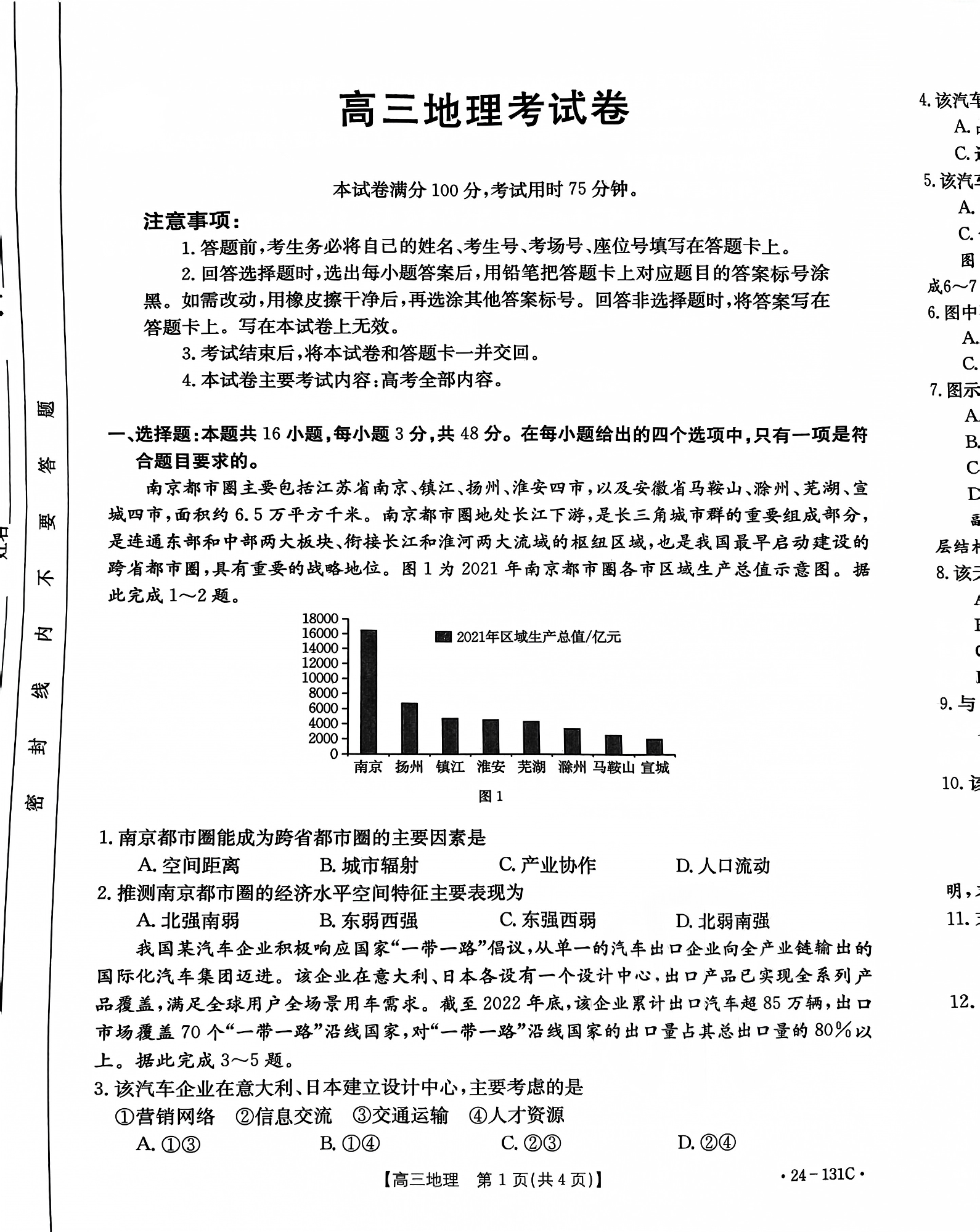 辽宁省朝阳地区2023-2024学年高三上学期期中考试 地理