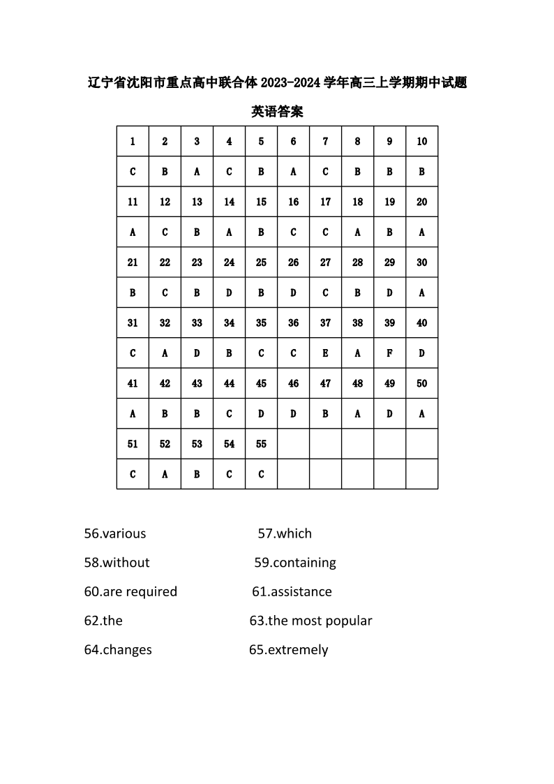 辽宁省沈阳市重点高中联合体2023-2024学年高三上学期期中考试 英语答案