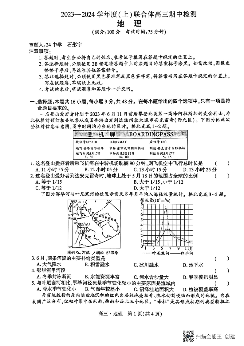 辽宁省沈阳市重点高中联合体2023-2024学年高三上学期期中考试 地理