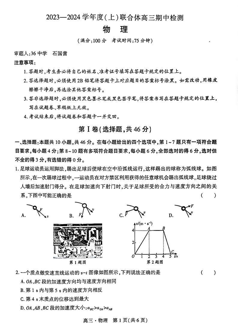 辽宁省沈阳市重点高中联合体2023-2024学年高三上学期期中考试 物理