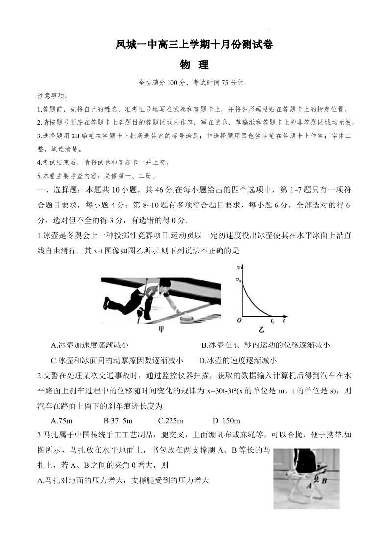 辽宁省凤城市第一中学高三上学期10月测试 物理