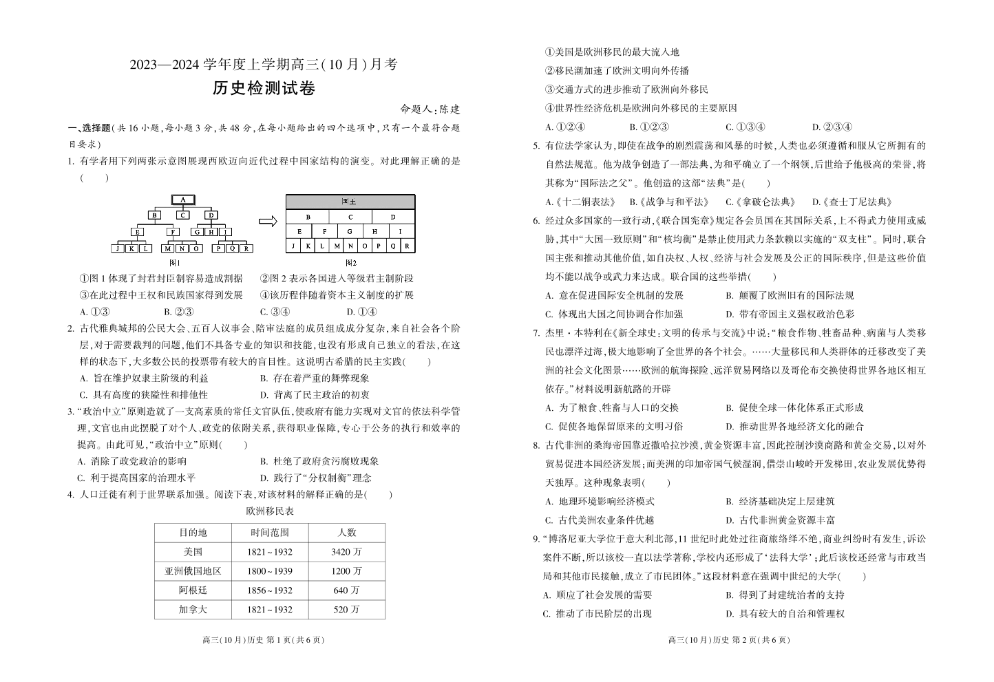 辽宁省新民市高级中学2023-2024学年高三10月月考 历史