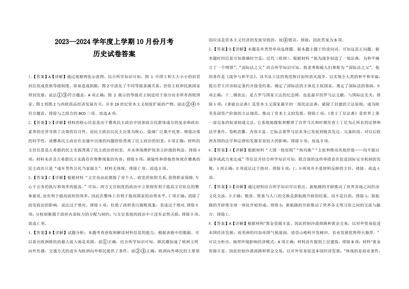辽宁省新民市高级中学2023-2024学年高三10月月考 历史答案