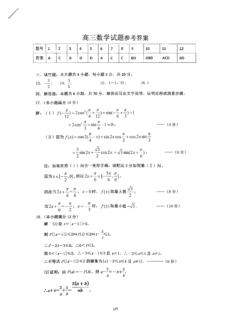 辽宁省鞍山市普通高中2023-2024学年高三上学期10月月考 数学答案