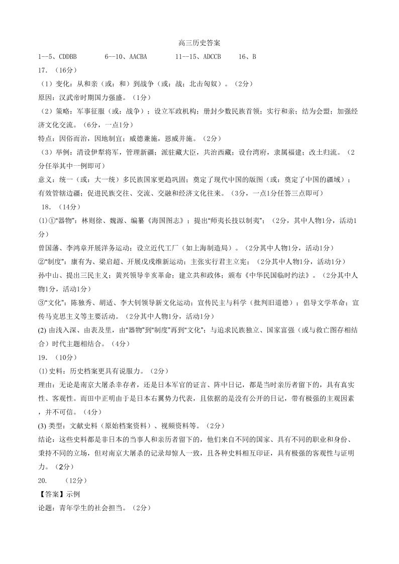 辽宁省鞍山市普通高中2023-2024学年高三上学期10月月考 历史答案