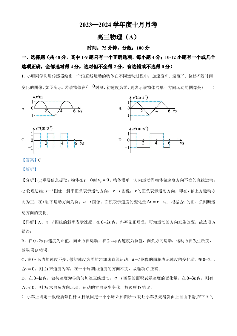 辽宁省鞍山市普通高中2023-2024学年高三上学期10月月考 物理答案