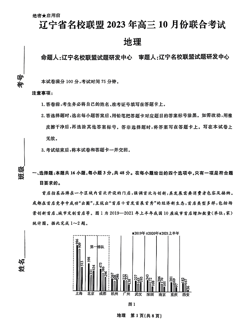辽宁省名校联盟2023-2024学年高三上学期10月联考 地理