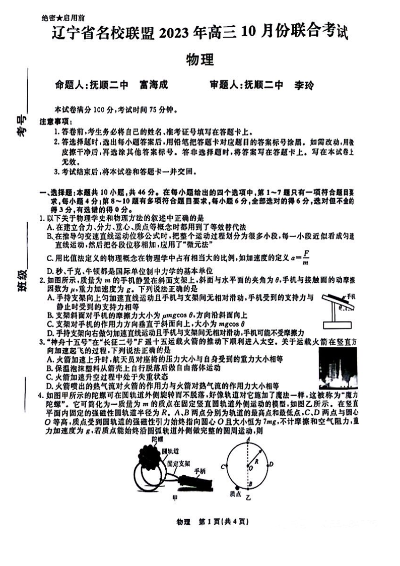 辽宁省名校联盟2023-2024学年高三上学期10月联考 物理