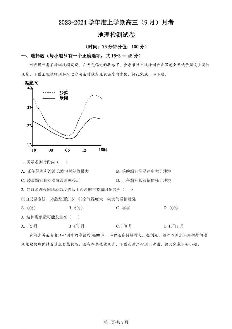 辽宁省沈阳市新民市高级中学2023-2024学年高三上学期9月开学考试 地理