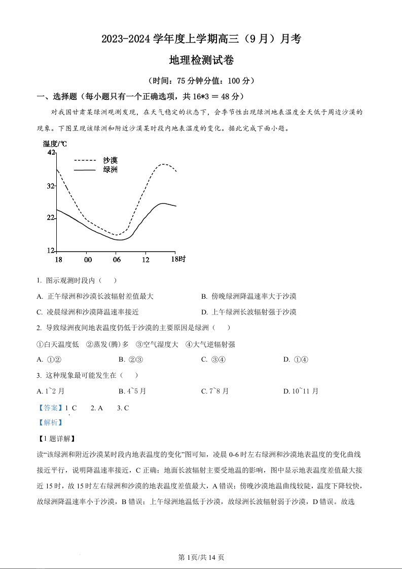辽宁省沈阳市新民市高级中学2023-2024学年高三上学期9月开学考试 地理解析