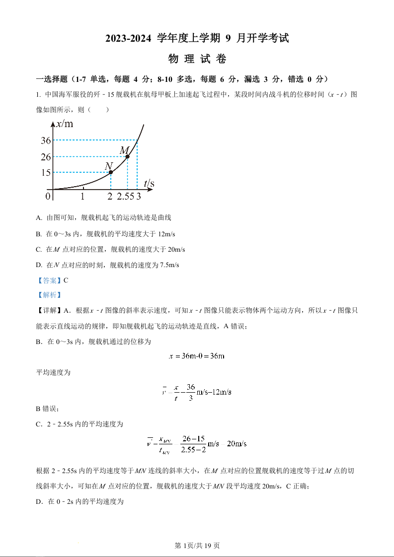 辽宁省沈阳市新民市高级中学2023-2024学年高三上学期9月开学考试 物理解析