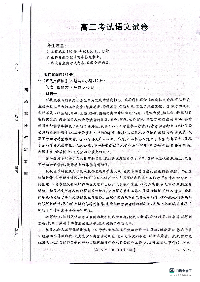辽宁省部分高中2023-2024学年高三上学期10月月考 语文