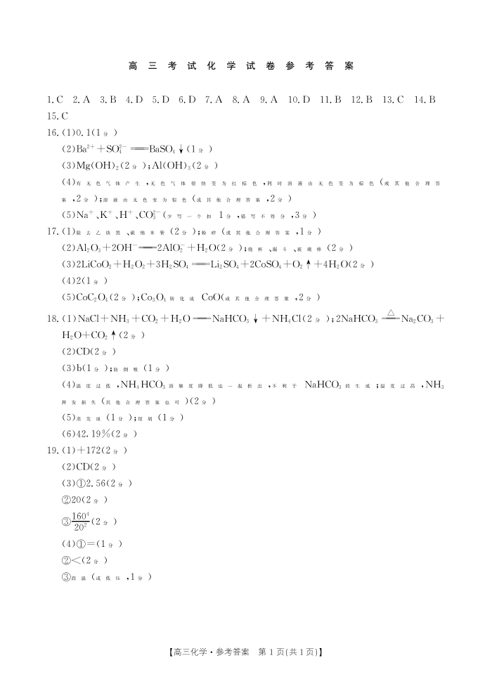 辽宁省部分高中2023-2024学年高三上学期10月月考 化学答案