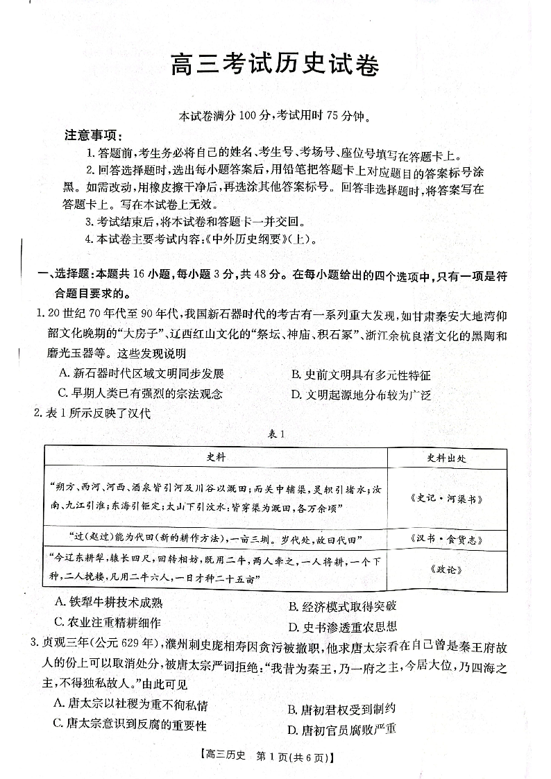 辽宁省部分高中2023-2024学年高三上学期10月月考 历史