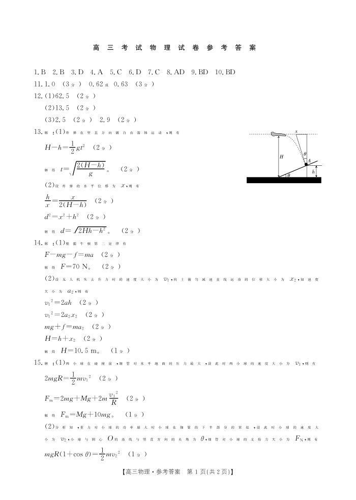辽宁省部分高中2023-2024学年高三上学期10月月考 物理答案