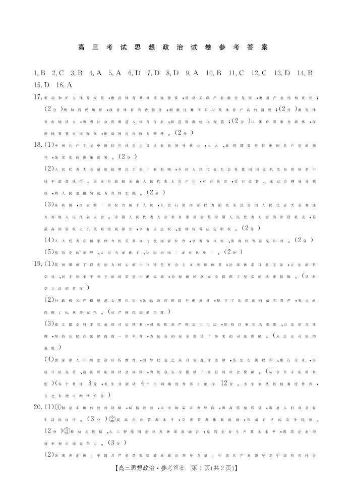 辽宁省部分高中2023-2024学年高三上学期10月月考 政治答案