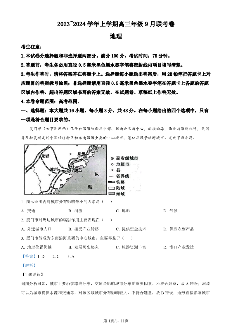 辽宁省名校协作体2023-2024学年高三上学期9月联考 地理答案