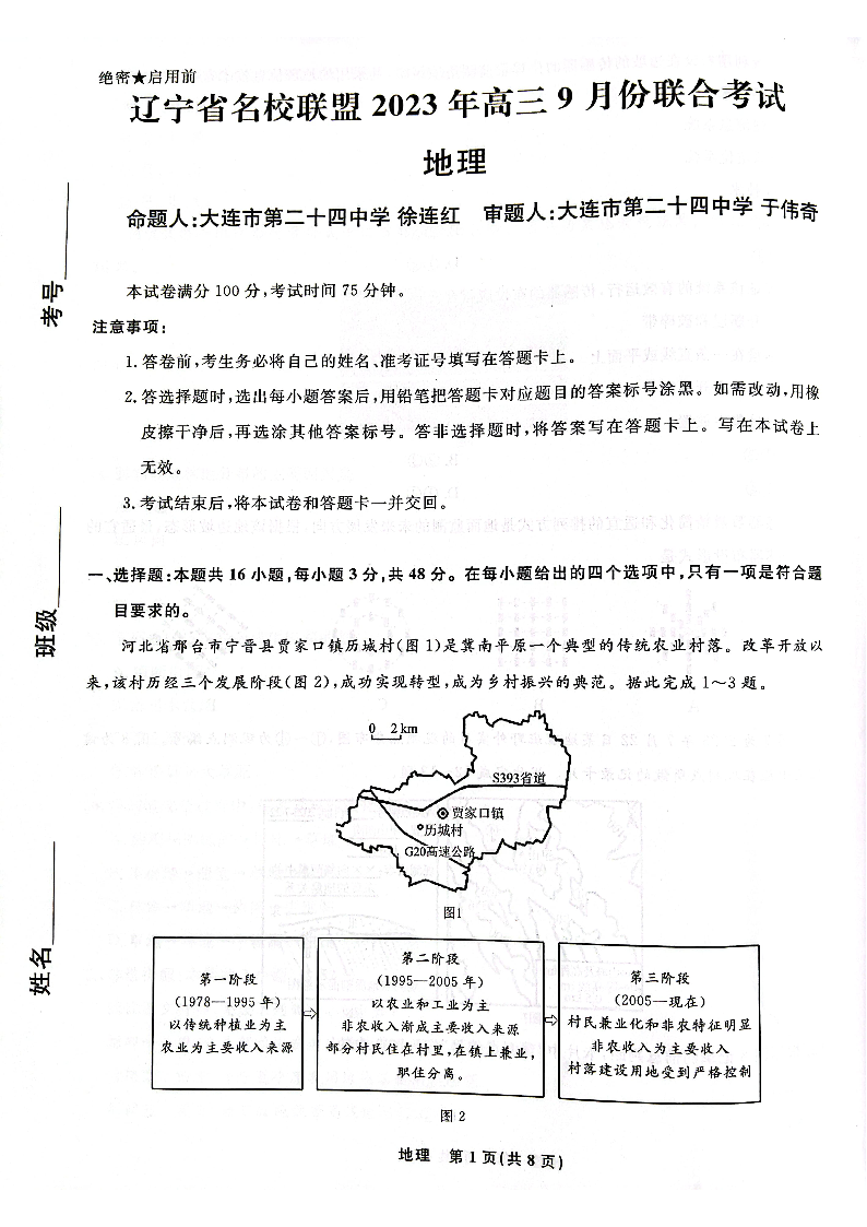 辽宁省名校联盟2023-2024学年高三上学期9月联考 地理