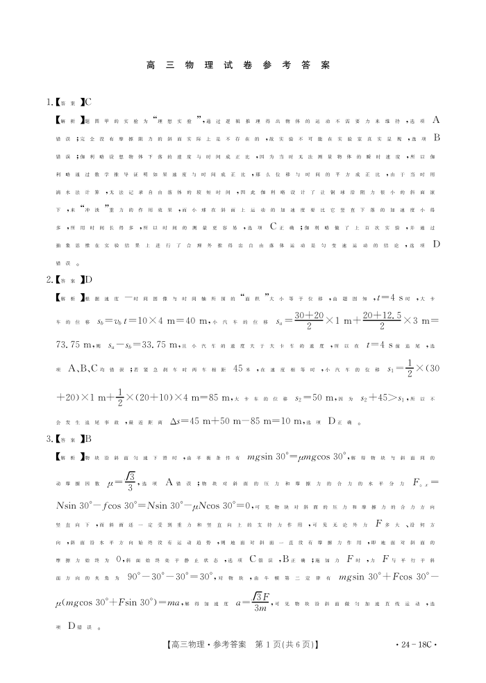 辽宁省部分学校2023-2024学年高三开学摸底考试 物理答案
