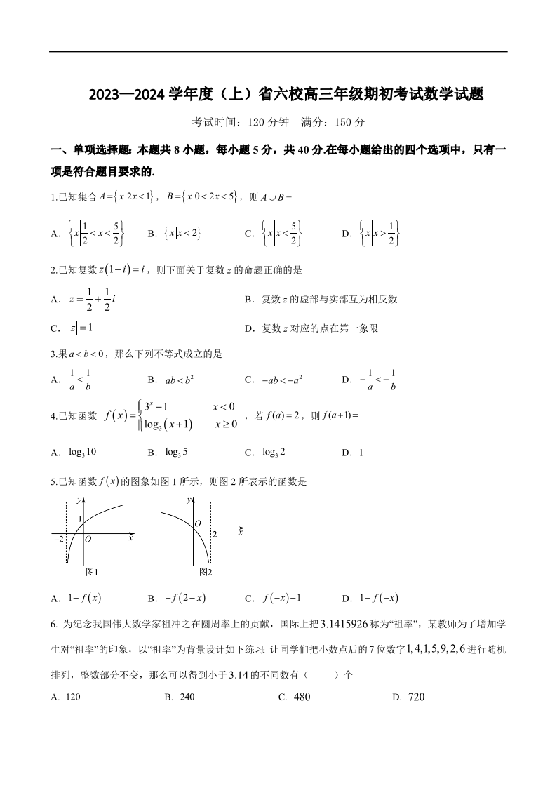 辽宁省六校2023-2024学年高三上学期期初考试 数学