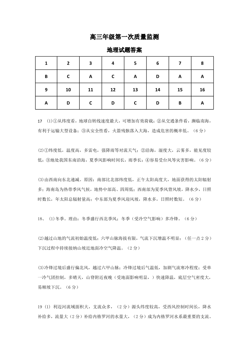辽宁省沈阳市第一二〇中学2023-2024学年高三上学期第一次质量检测 地理答案