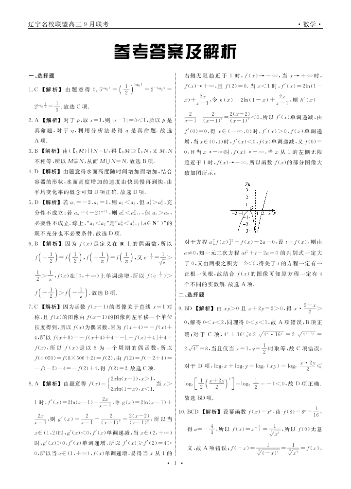 辽宁省名校联盟2024年高三9月份联合考试+数学答案