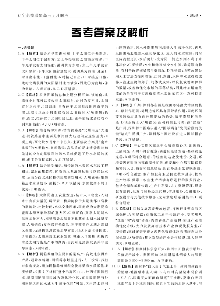 辽宁省名校联盟2024年高三9月份联合考试+地理答案