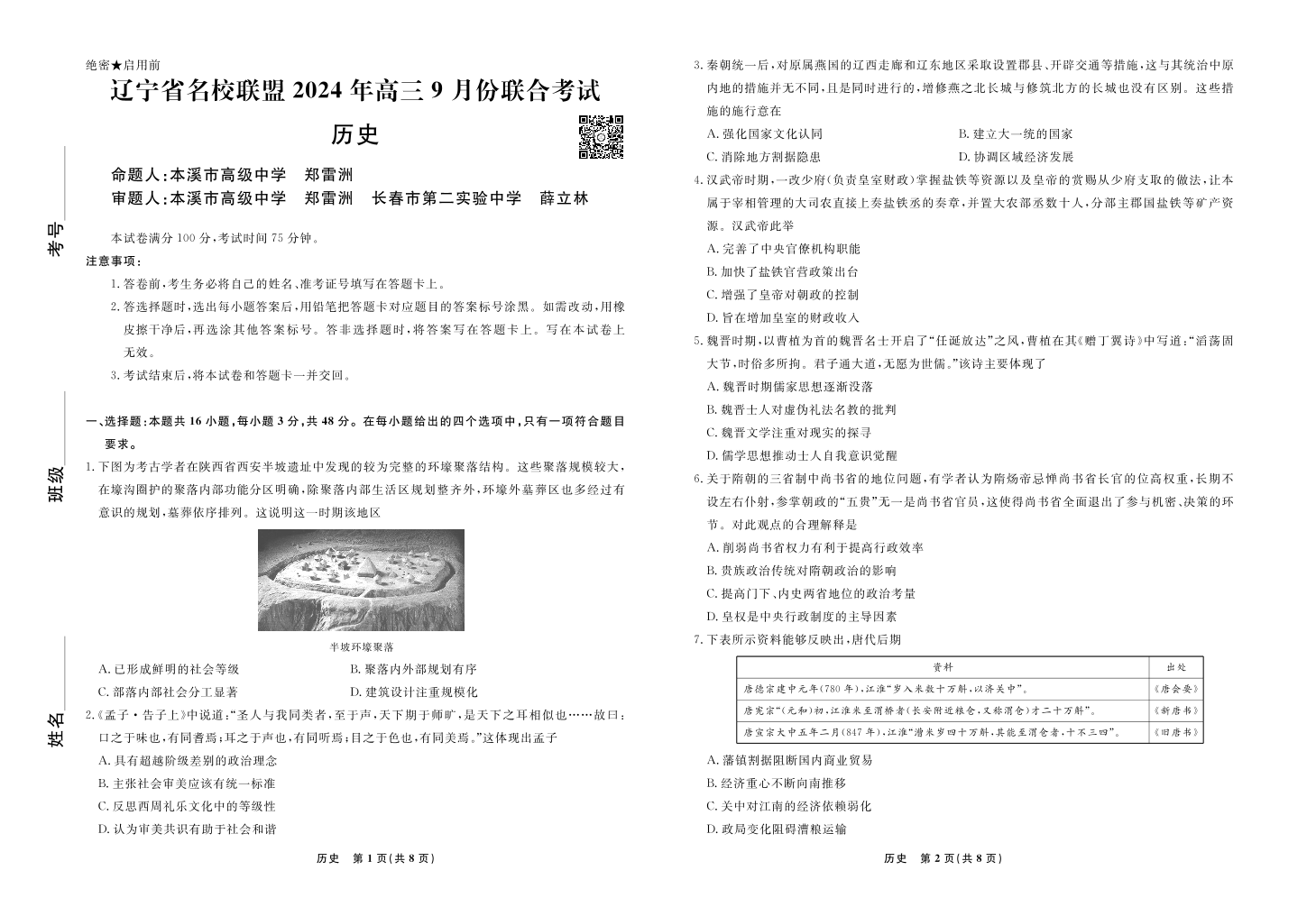 辽宁省名校联盟2024年高三9月份联合考试+历史