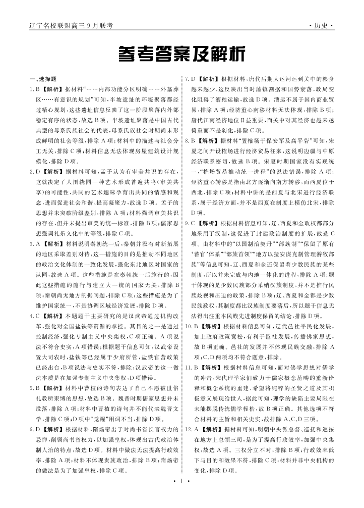 辽宁省名校联盟2024年高三9月份联合考试+历史答案