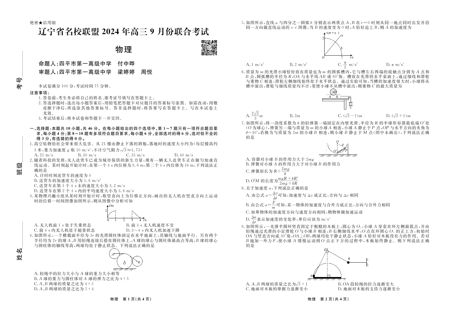 辽宁省名校联盟2024年高三9月份联合考试+物理