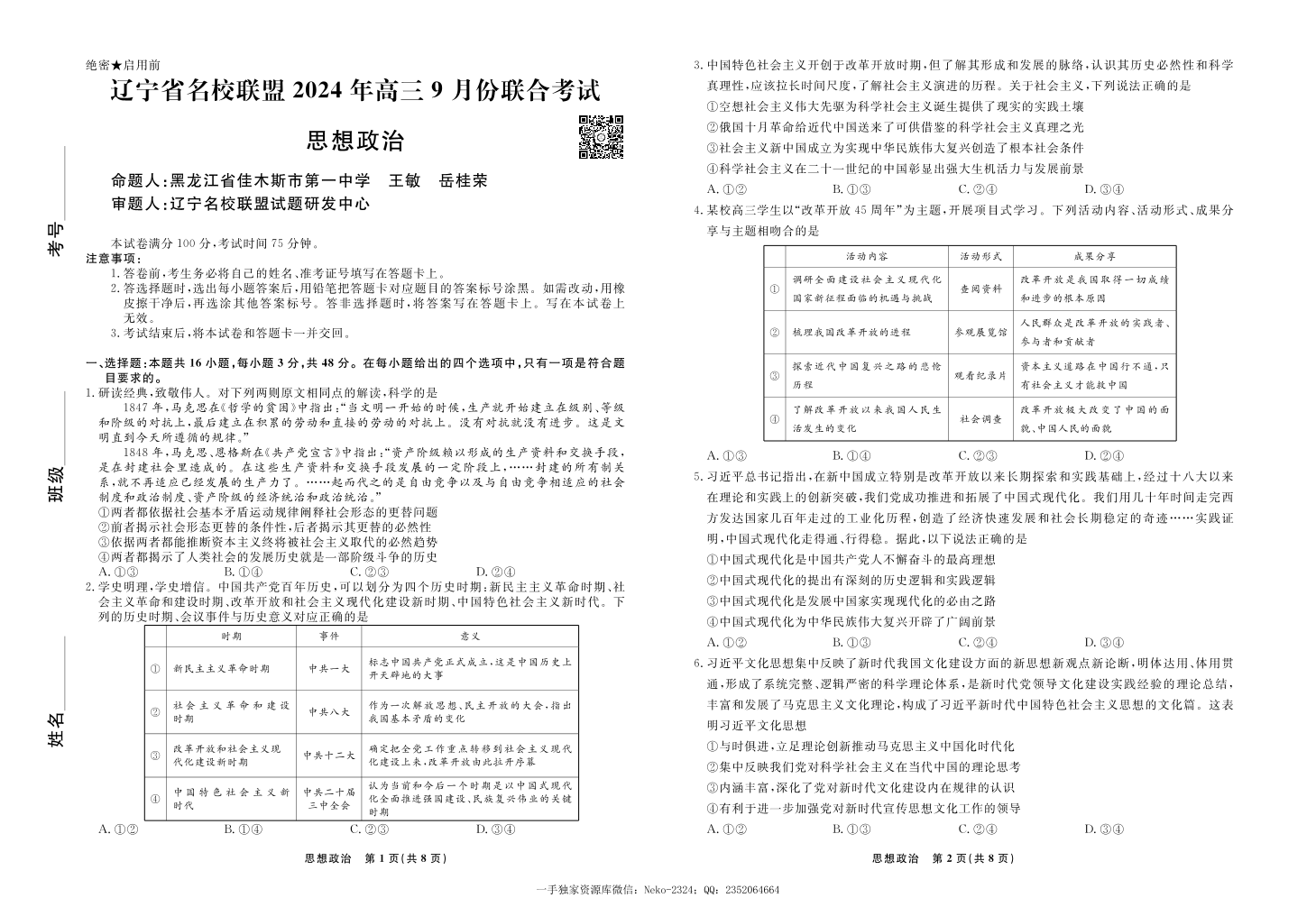 辽宁省名校联盟2024年高三9月份联合考试+政治