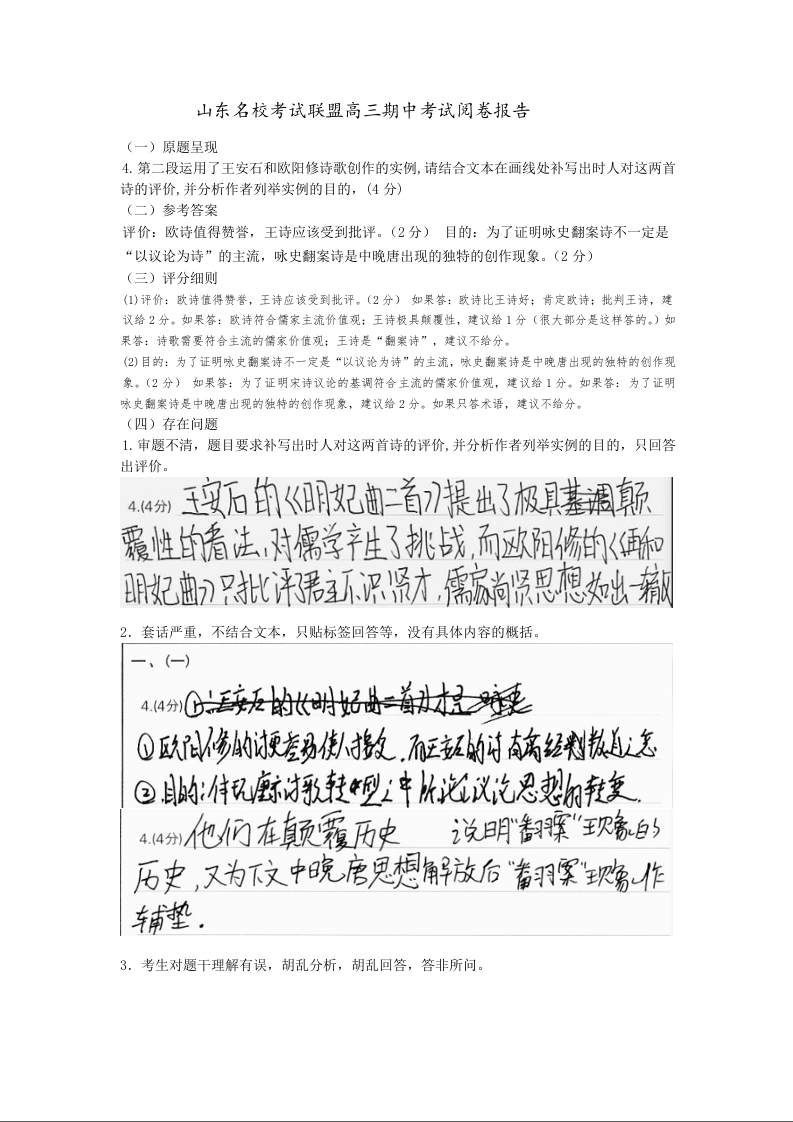 山东省济南名校考试联盟2024.11高三期中阶段性测试语文阅卷报告