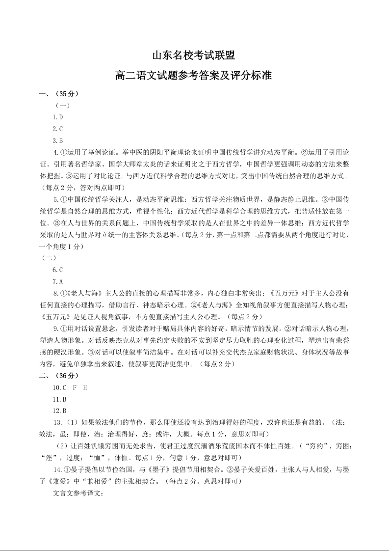 山东省济南名校考试联盟2024.11高二年级上学期期中检测语文答案