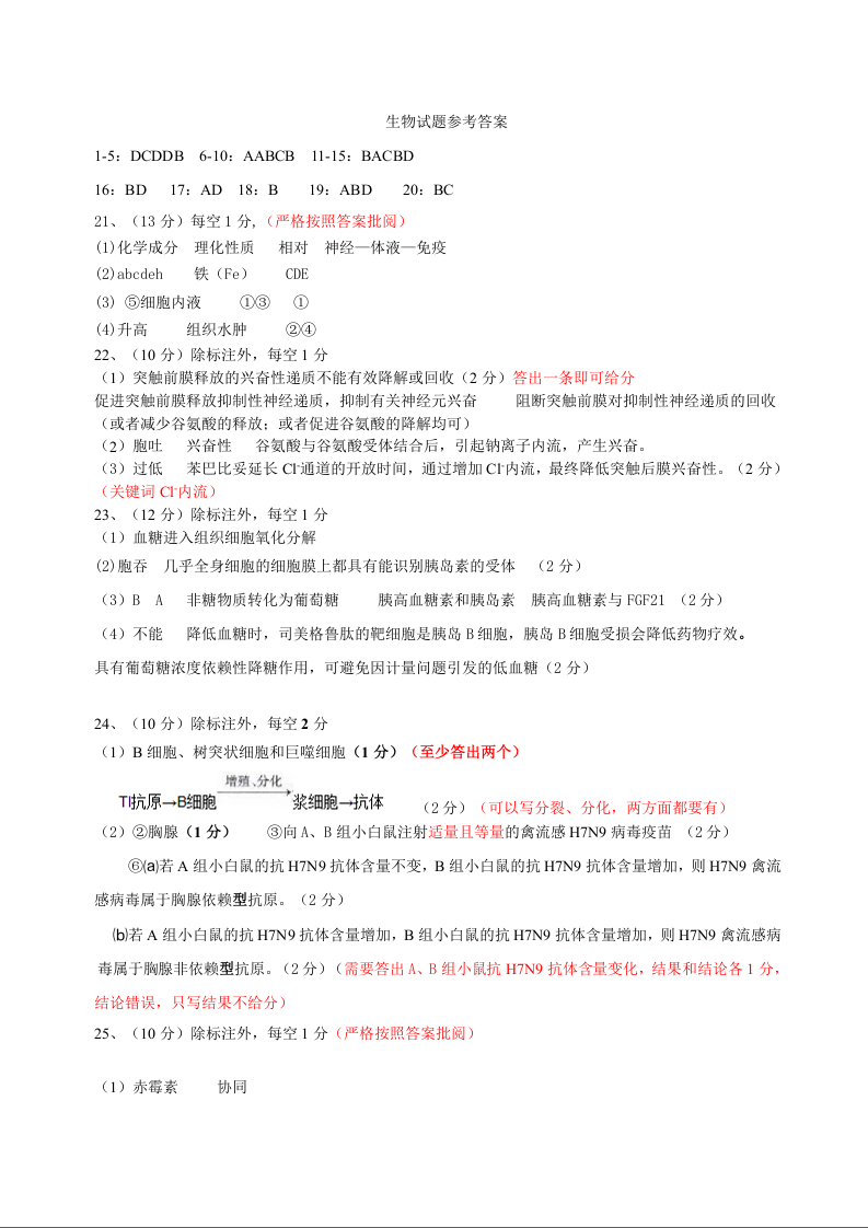 山东省济南名校考试联盟2024.11高二年级上学期期中检测生物答案