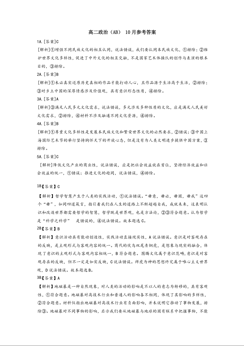 山东省济南名校考试联盟2024.11高二年级上学期期中检测政治AB答案