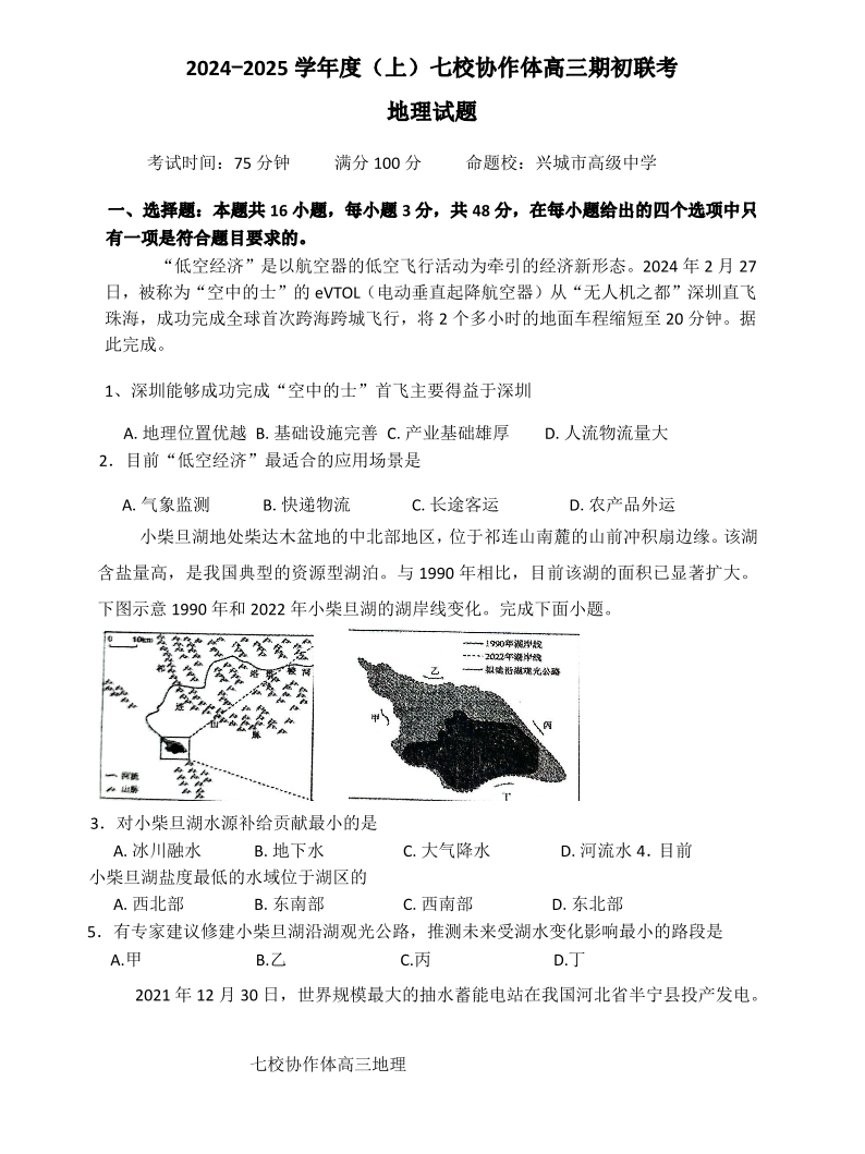 辽宁省2024-2025学年度(上)七校协作体高三期初联考+地理
